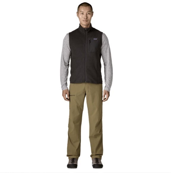 メンズ・R1 エア・ベスト | R1 エア・ベストは軽量で優れた通気性と速乾性を備え、冷涼な状況で胴部を温めるテクニカル・フリース。肩と腕の動きを妨げずに保温性を高めるのに理想的で、運動中も快適さを保つリサイクル・ポリエステル100%素材を使用。フェアトレード・サーティファイドの工場で製造。【重さ】241g